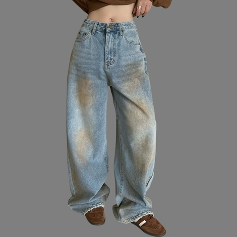 Dames Amerikaanse Retro Stijl Lente Street Fashion Veelzijdige Losse Lange Distressed Katoenen Jeans Baggy Cargo Design